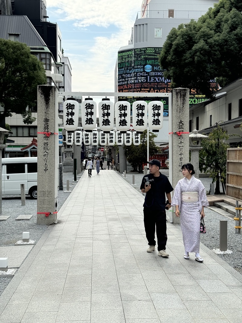 神社位於繁華的鋼筋水泥大廈附近,形成強烈的對比。
