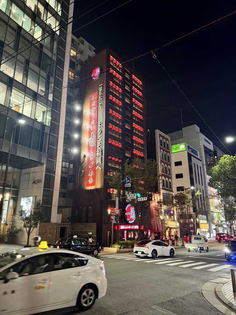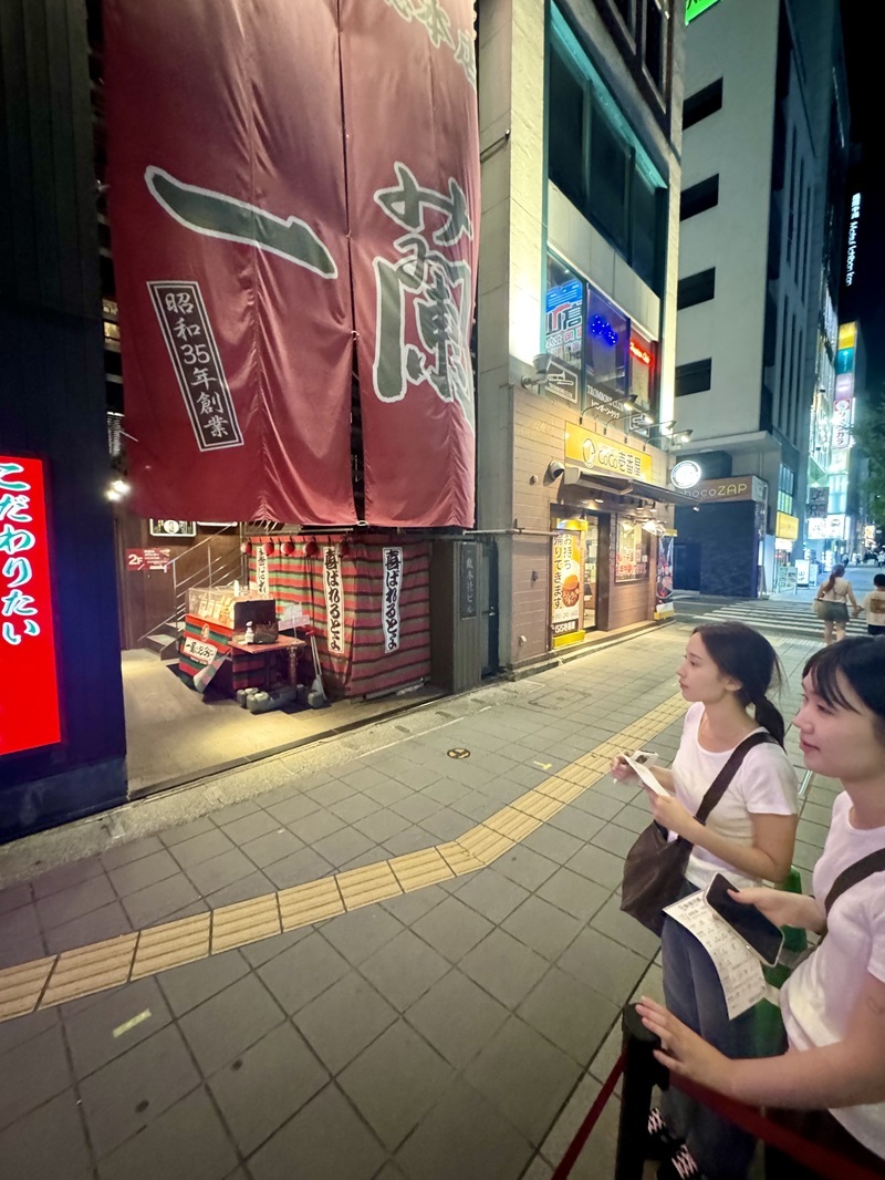 今晚我們來到了超有名的一蘭拉麵本店, 這棟建築真的是好壯觀!