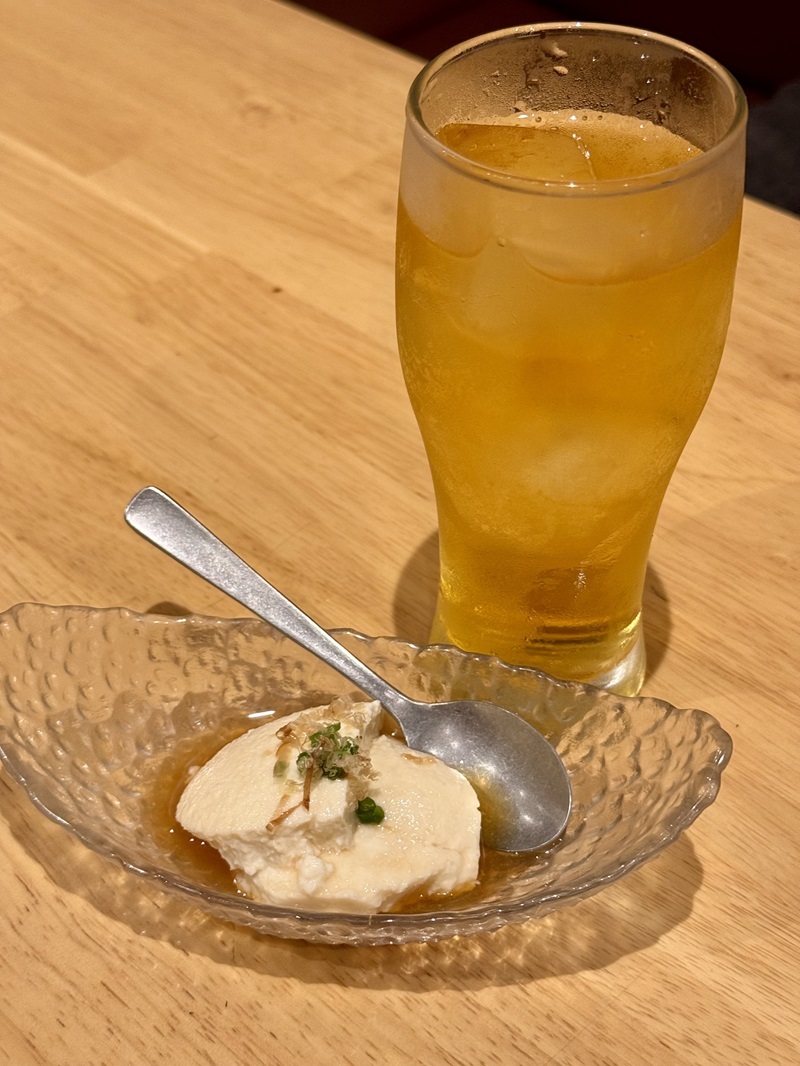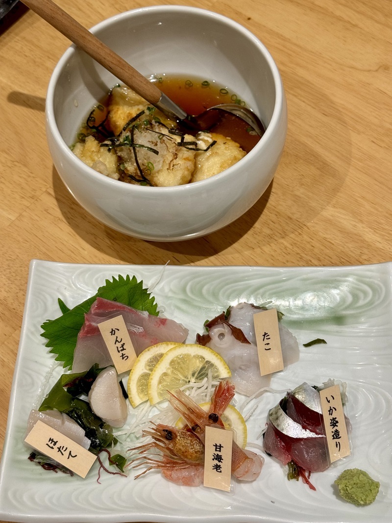坐下後,老闆還招待了我們一些豆腐,口感清爽, 搭配一點昆布醬,真的是蠻好吃的!
