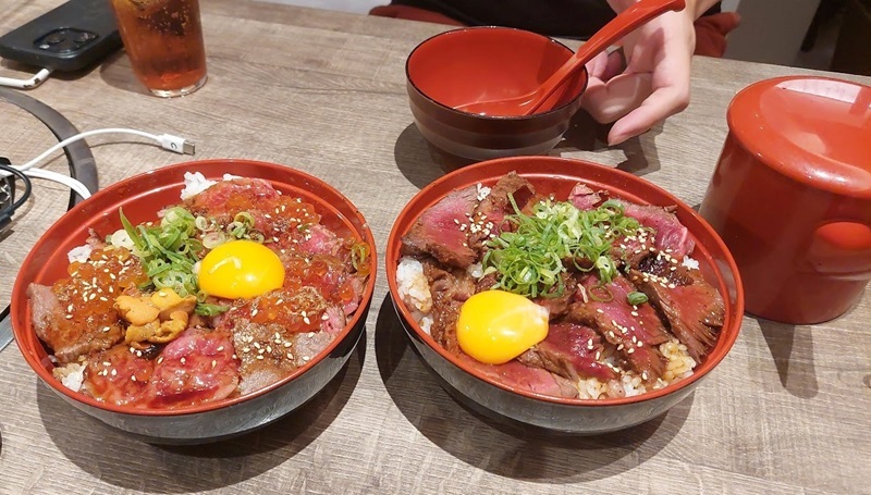 到了中午就來到戰神推薦的店吃飯, 大家搭配點平價和奢華的牛肉丼飯, 來場平價奢華大對決,