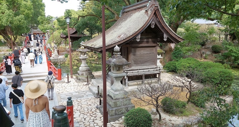 除了壯麗的御本殿(主神殿)外, 神社還有博物館、較小型的神社、雕塑、當代藝術作品, 以及販賣當地著名甜品梅枝餅的茶屋。