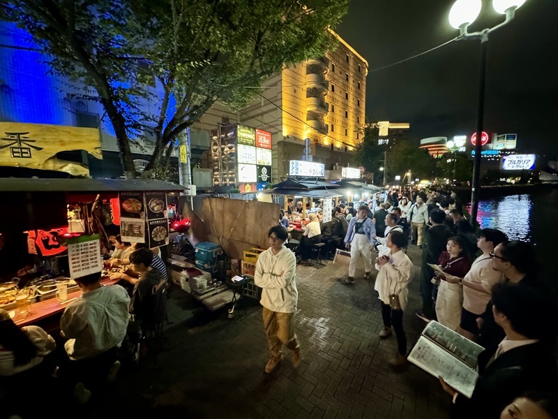 這裡有許多經典的屋台(攤販), 提供各種地道的福岡美食, 特別是拉麵、串燒和小吃, 吸引了不少當地居民和遊客前來品嘗。