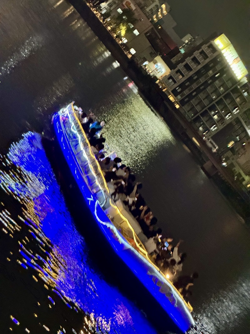 我們還看到了運河上的遊船從旁經過, 為這個夜晚增添了不少風情。