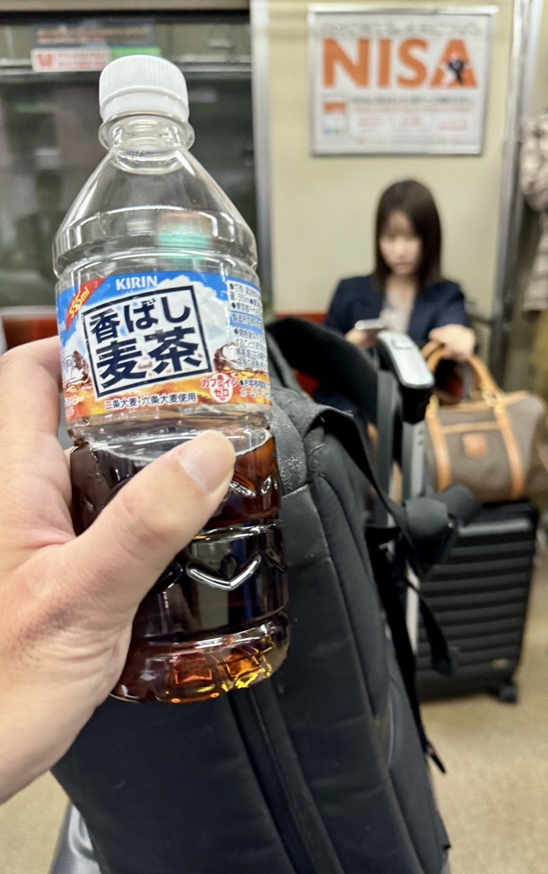 他拿起手機相機, 然後說:「拍一下麥茶,來替這趟畫個句點!」