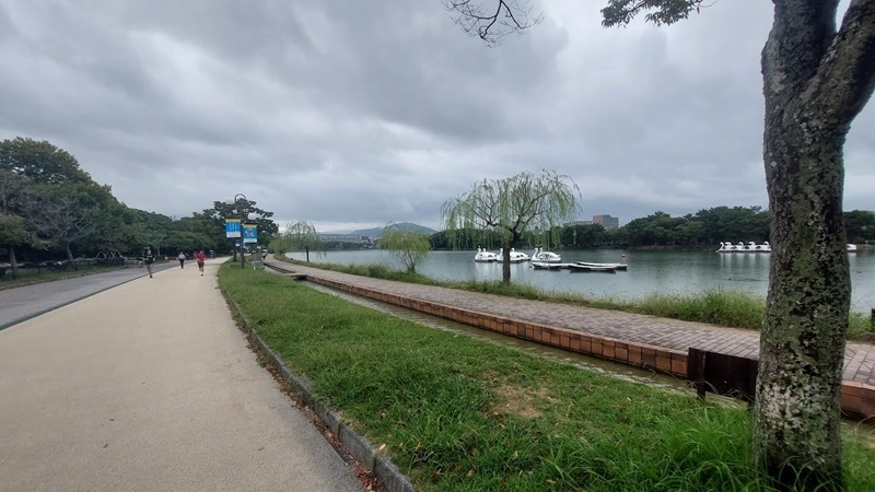 水池周圍整備了約2公里的周遊步道,不僅適合散步, 也是非常熱門的慢跑和自行車路線。