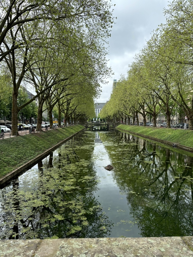 接著回旅館退房,然後徒步走去萊茵塔,沿途欣賞美景, 如:國王大道、精品大街、舊城區、萊茵河畔。
