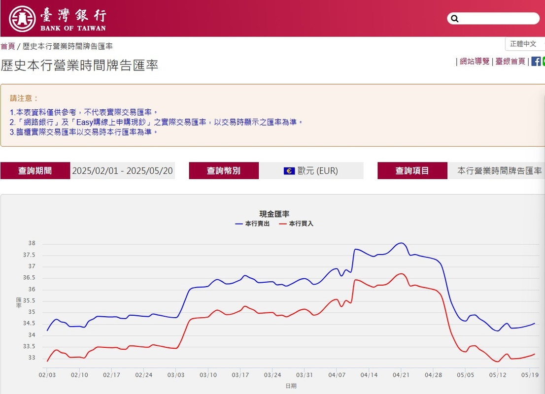這次要去的時候川普亂放話,國際金融震盪, 歐元匯率37點多阿……有夠貴,真的沒輒, 如果可以的話應該要分批換歐元,