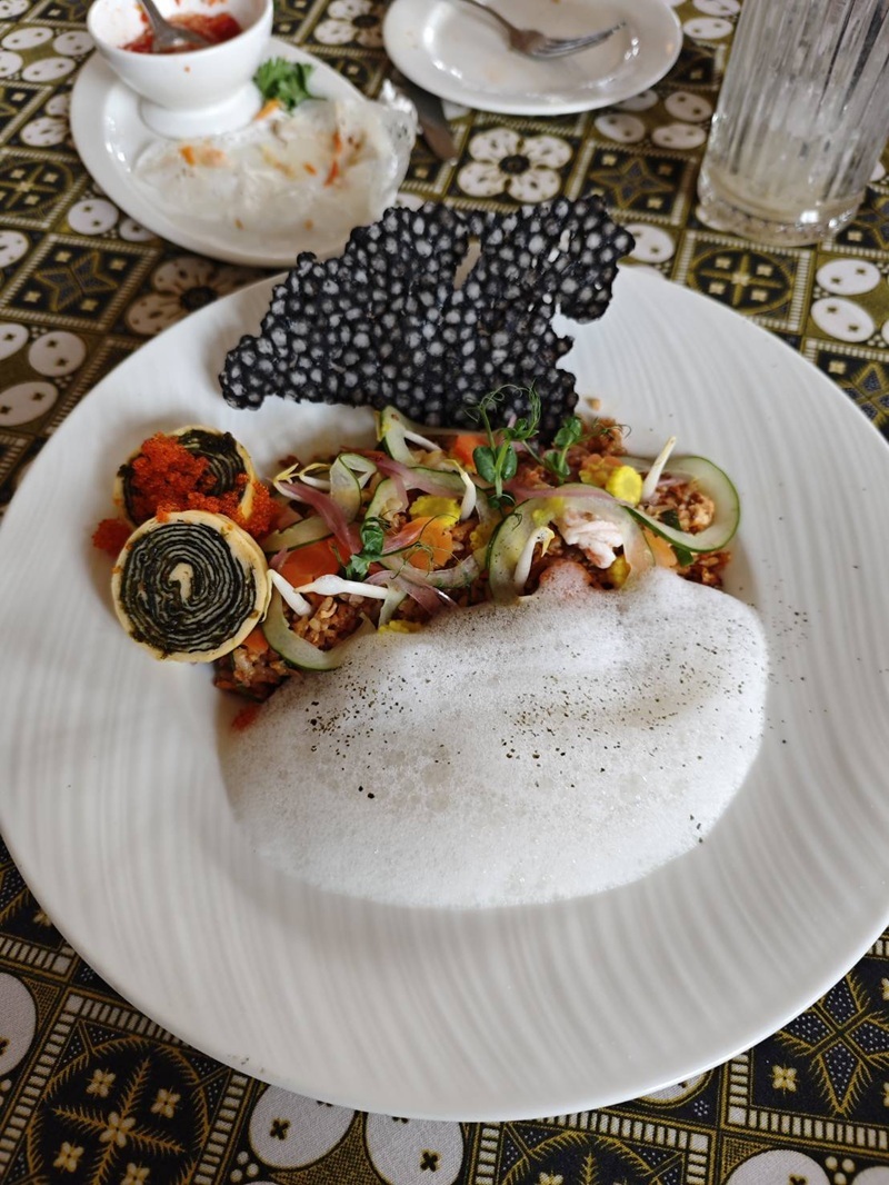 午後的陽光漸趨炙熱,晚餐安排在一間高檔的日惹網美餐廳, 菜餚精緻如藝術品,散發著濃郁的印尼風情。