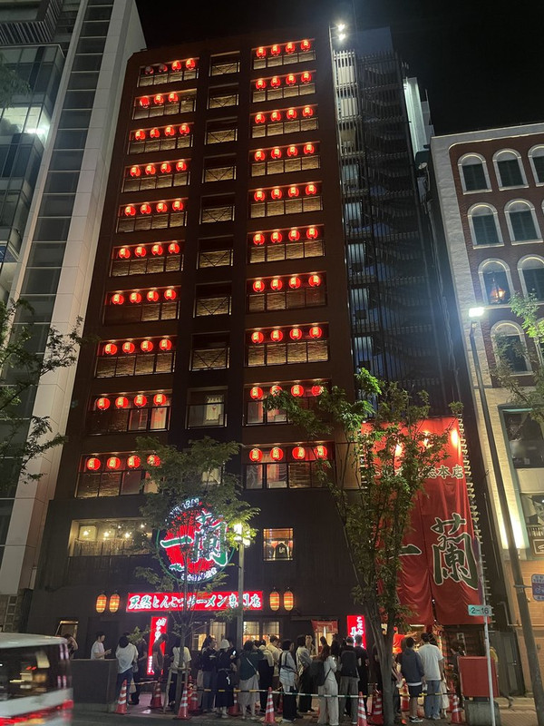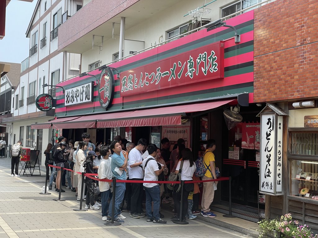 隔壁的一蘭拉麵 則是排滿了人群 聽說這裡碗的形狀跟碗底 跟其他地方不同 也是考生來必吃的