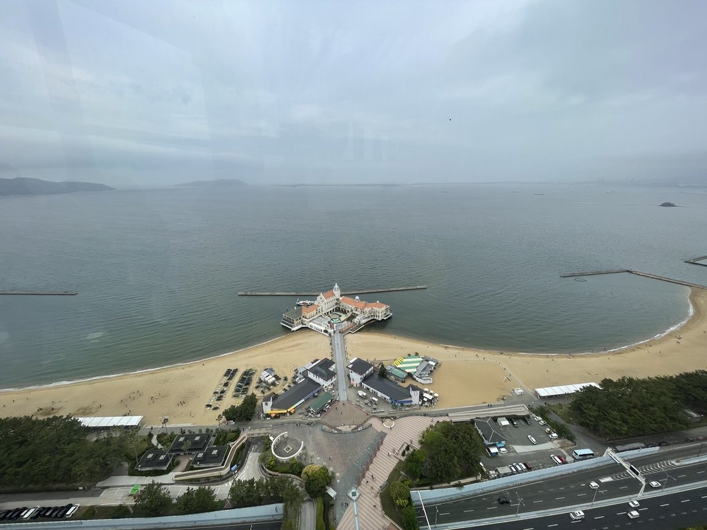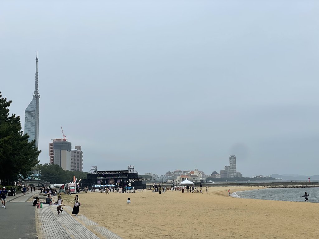 先經過有著人工沙灘的百道濱海濱公園