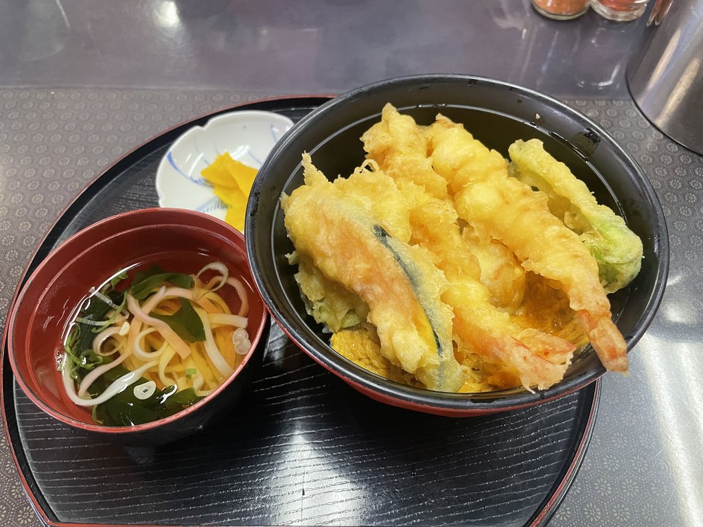 大夥先到車站旁的小店 吃一下炸蝦天婦羅丼飯或烏冬麵 填飽一下肚子