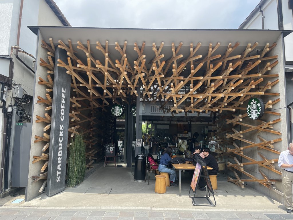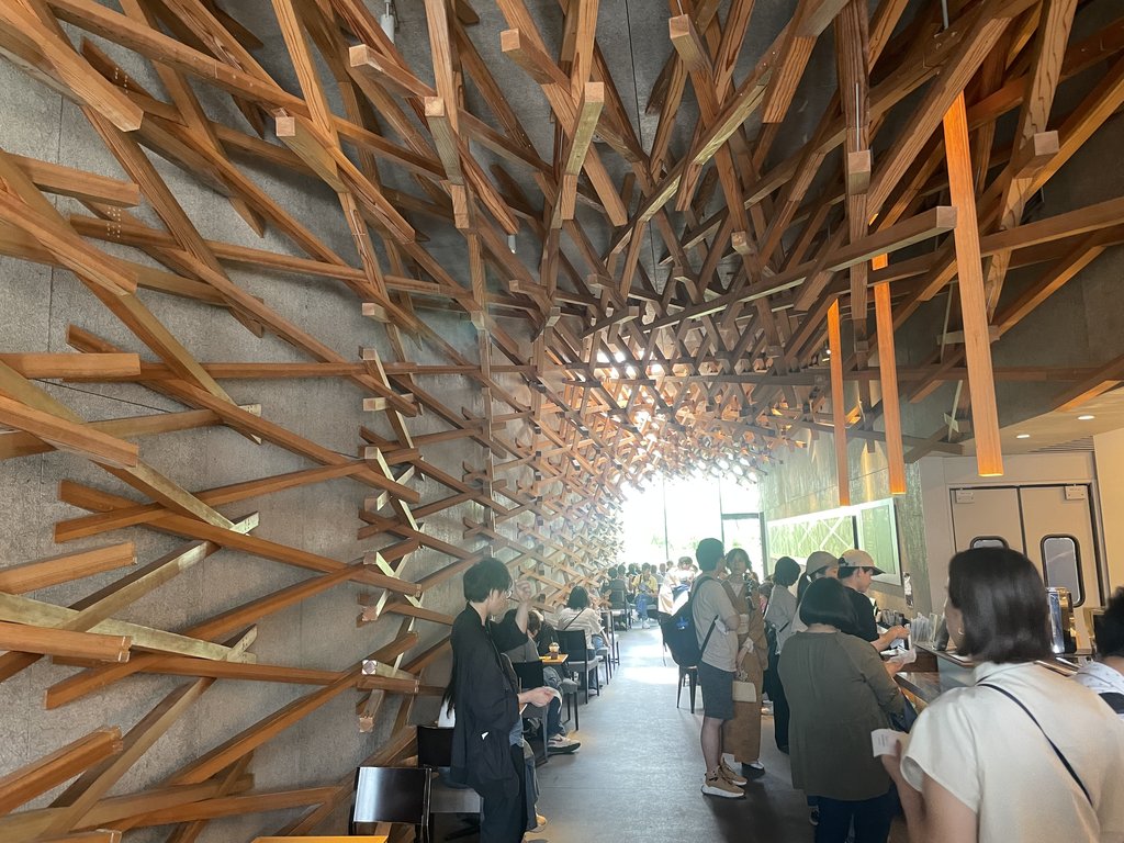 途經的星巴克則是由日籍建築師「隈研吾」所操刀設計 運用了近兩千根木條交織出視覺的震撼 也是拍照打卡的熱點