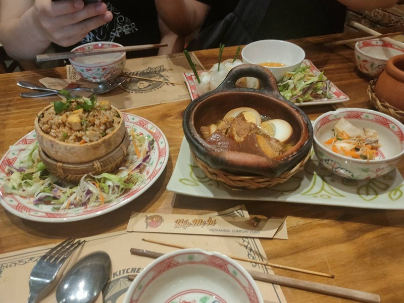 旁邊聽著團友們在跟越南妹妹聊怪怪又澀澀的天 中午去吃網紅店 這間店叫胖媽廚房,是越式家常菜餐廳, 主打「媽媽的味道」。餐點以經典越南家常菜為主, 擺盤精緻、口味也道地。