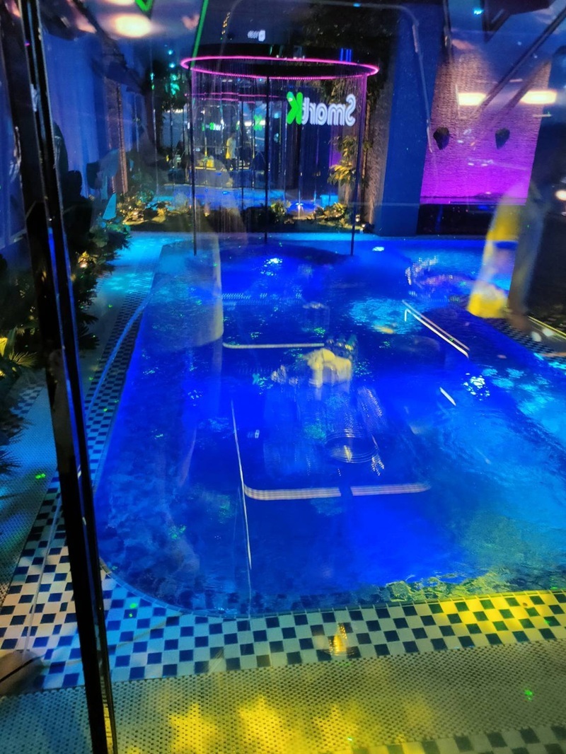我點了一位長的很像混血兒的美女一起洗澡 原本大家要一起在泳池玩耍的 結果泳池太冷大家弟弟都縮下去了 只能各自去小包廂玩美女了