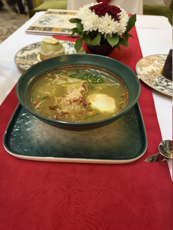 室內裝潢帶有濃厚懷舊感 — 牆上掛著古老照片、 油畫,室內有老雕像及古董文物, 營造出神秘又懷舊的美學感受讓用餐感覺像進入 老雅加達的文化場景,餐點充滿印尼風味與創意 融合感。除了傳統佳餚,還有用當地香料與新鮮 食材打造的現代料理,每一道都像在講述雅加達 的故事。甜點精緻,是味覺與氛圍兼具的美食體驗。