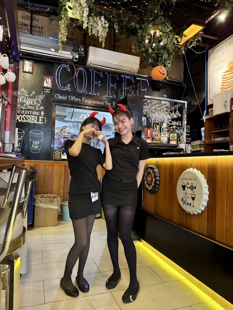 🎃萬聖節🎃 一早我到了步行街附近的咖啡廳, 就看到可愛的服務生女孩已經開始裝扮